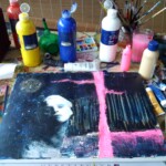 Ich fand Collagen immer schon spannend. Nur irgendwie hab ich mich da nie rangetraut. Jetzt ist es soweit und ich bin malwieder selbst überrascht wie sich so ein Bild nach und nach verwandelt. Fläche dreiteilen, ein paar Farbtupfer drauf, ein Foto aus irgendeiner Zeitschrift und los gehts 🙂