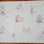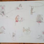 Neulich im Zoo: Ferienzeit. Überall wuselnde Familien, hüpfende Kinder, wildes Umhergerenne, Gestaune und irgendwo mittendrin ich. Mit Zeichenpapier, Aquarellkasten, Bleistift und Pinsel. Mitten im Weg auf dem Boden vor den Giraffen, völlig verkrampft auf der Mauer vorm Affentollplatz und am Rand auf der Bank mit Blick auf den Flamingosee. Erstaunlich wie sich das Zeitempfinden verschiebt, wenn man mal kurz anhält. Wie schnell die Menschen von Gehege zu Gehege hechten und eigentlich gar nichts sehen.